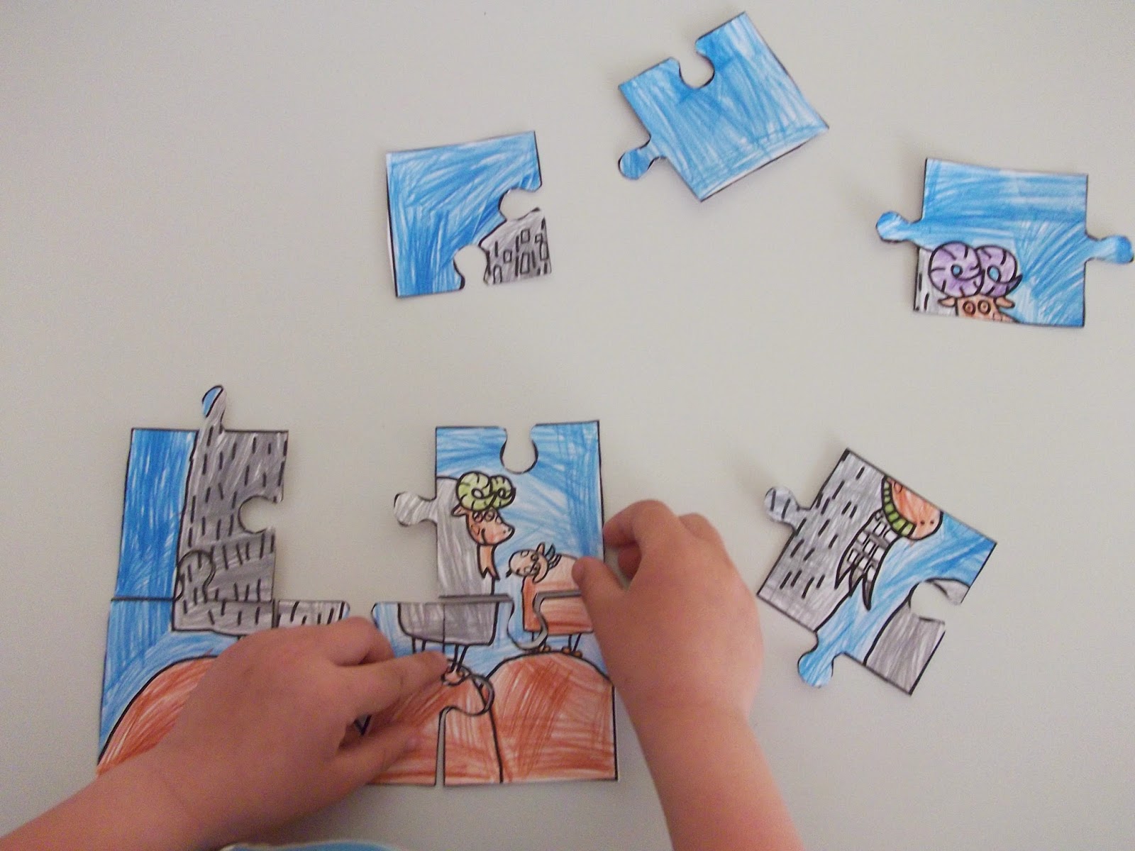 - Elaboración de un puzle con la imagen de la portada del cuento para luego jugar a montarlo.