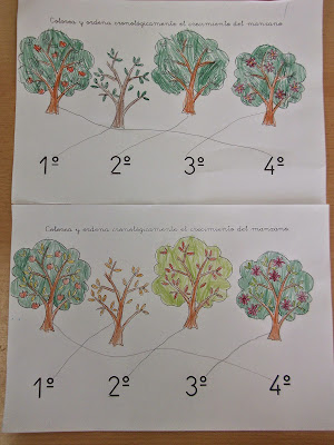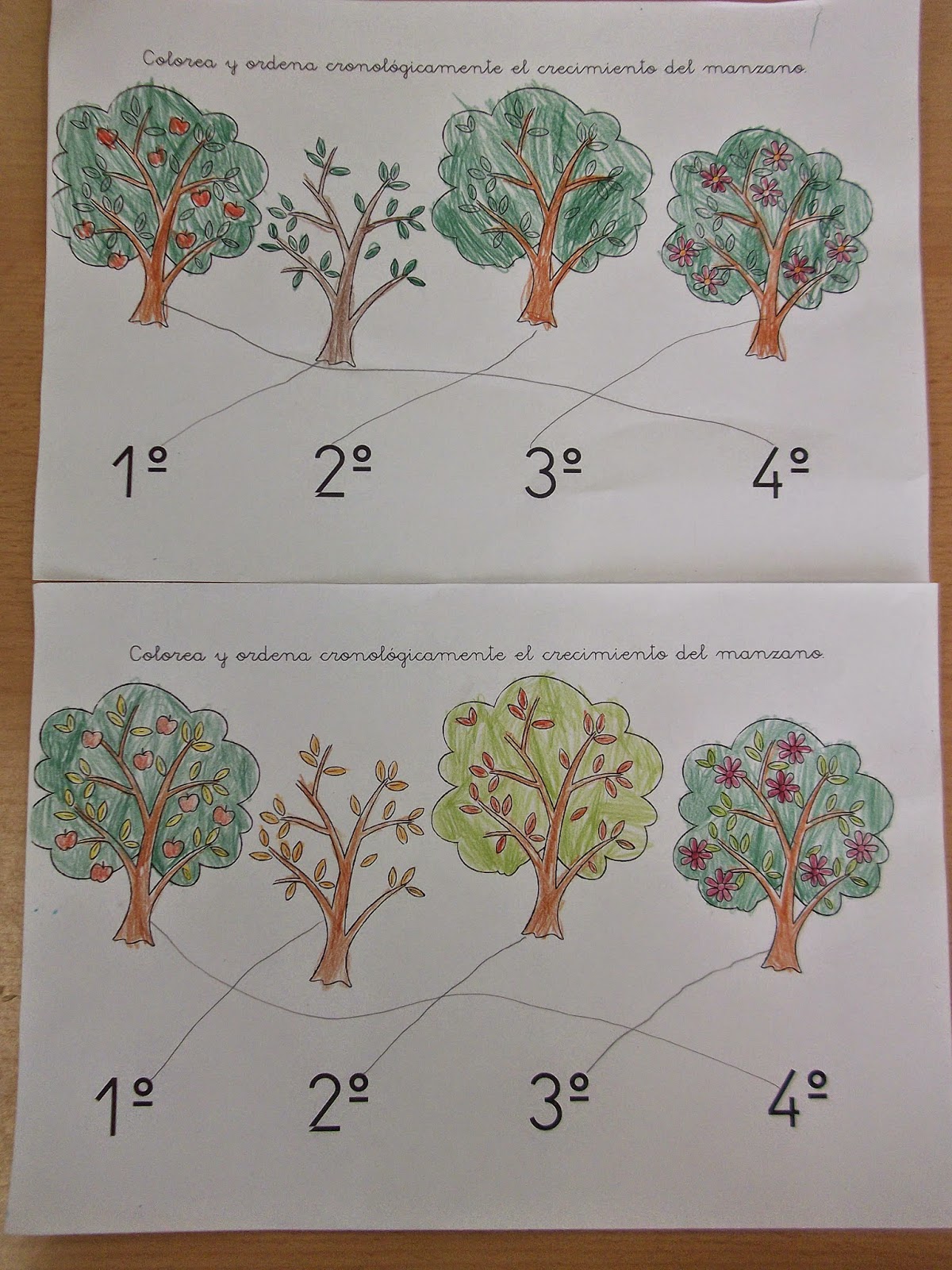 - Ficha donde hay que ordenar cronológicamente el crecimiento del manzano.