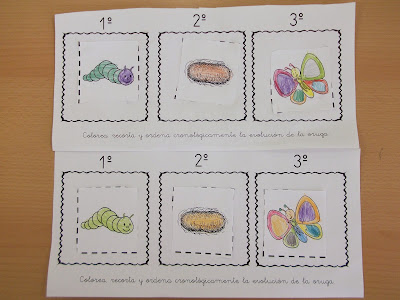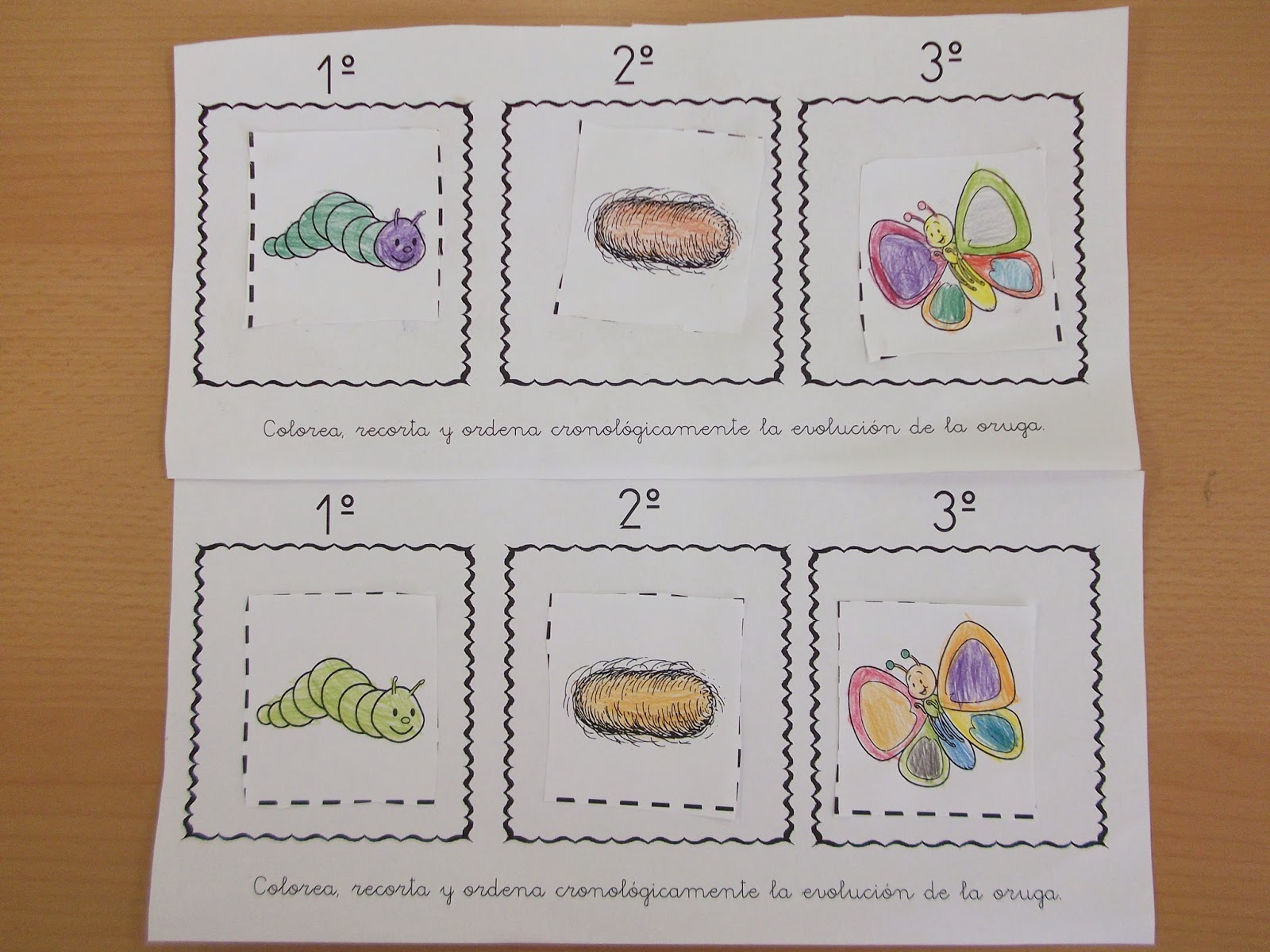 - Realizaremos la ficha donde tendrán que colorear y ordenar cronológicamente la evolución de la oruga.