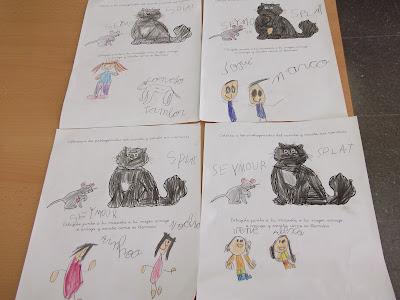 - Tras la lectura del cuento planteamos las siguientes preguntas: ¿por qué creéis que al principio Splat no quería ir al cole?, ¿a quién se llevó escondido en su tartera?, ¿qué pensaban los demás gatos sobre los ratones?, ¿cómo se llama su profesora?,...