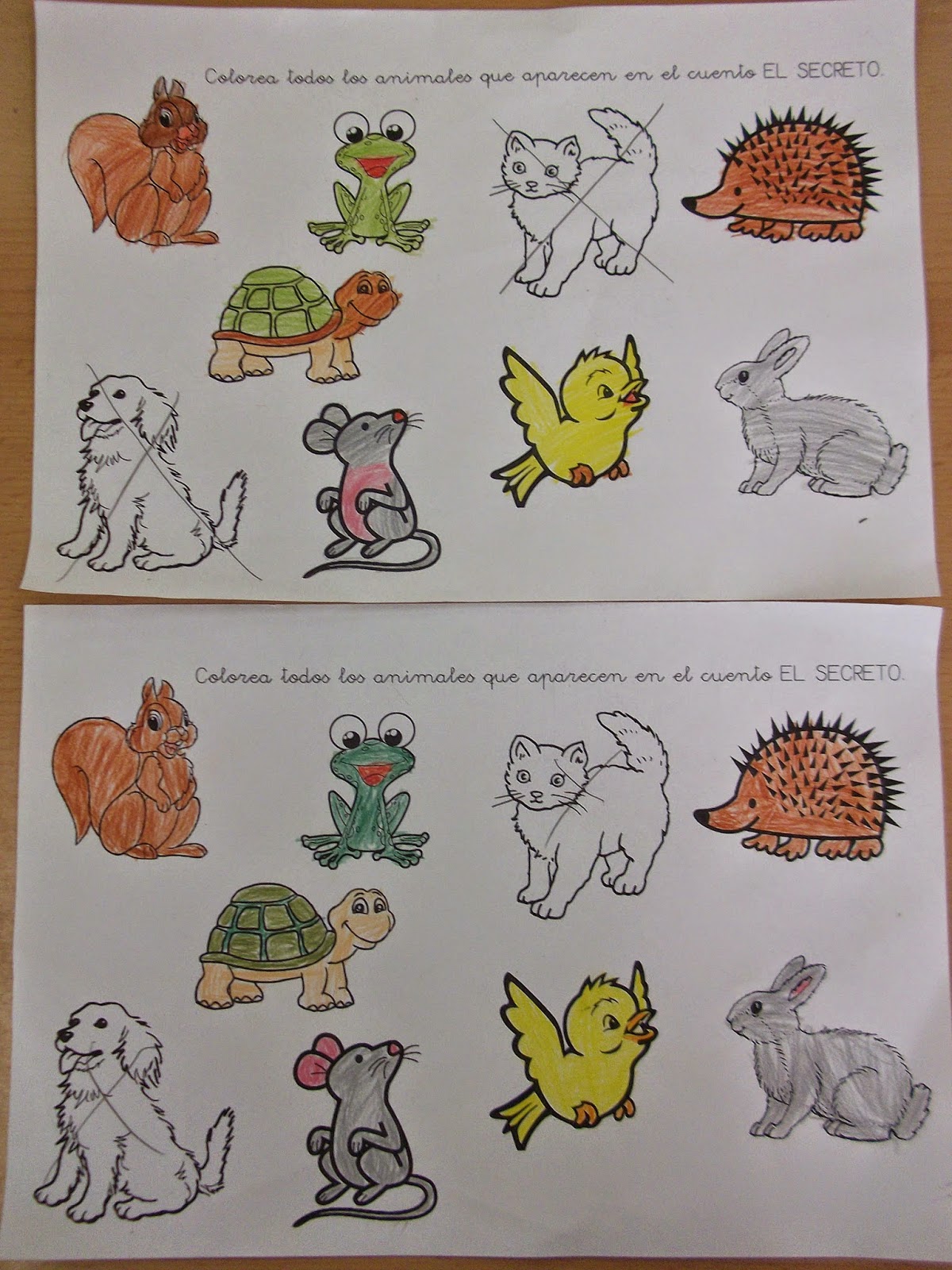 - Una vez leído el cuento se plantearon preguntas de comprensión sobre el mismo: ¿qué es un secreto?, ¿cuál era el secreto del ratón?, ¿qué animales aparecen en el cuento?, ¿qué pasó al final con el secreto del ratón?...