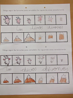 - Tras escuchar atentamente el cuento, se hacen las siguientes preguntas comprensivas: ¿cuántos chivos hay?, ¿de qué tamaños son?, ¿consiguió el ogro comerse a alguno de ellos?, ¿qué pasó al final del cuento?,...